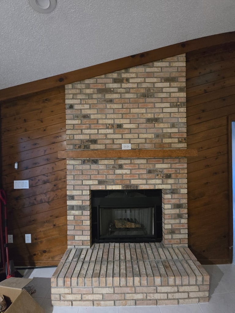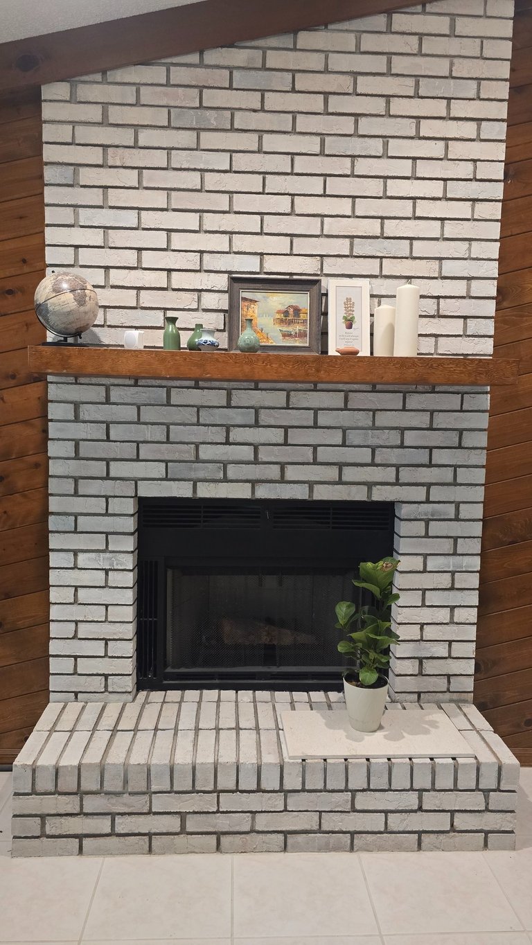 Interior vs exterior: Avoid the inside of the firebox unless you’re using a high-heat product. Limewash is great on the surround and exterior chimney.